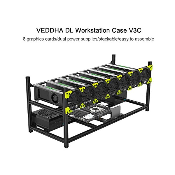 Bslemon 8 GPU Fanless Stackable Miner Aluminum Mining Frame Mining Rack Black Mining Rack for Mining Bitcoin, Crypto…