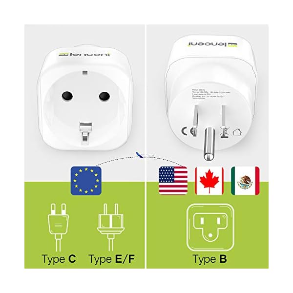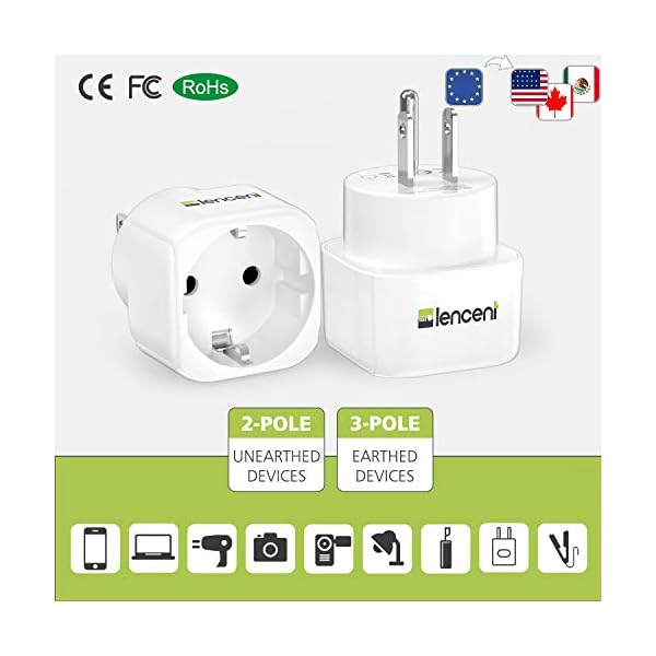 LENCENT 2 Pack Europe to US Plug Adapter, European to USA Adapter, American Outlet Plug Adapter, EU to US Adapter…