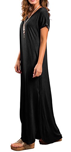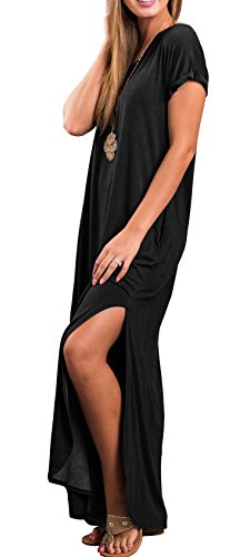 GRECERELLE Women’s Casual Loose Pocket Long Dress Short Sleeve Split Maxi Dresses