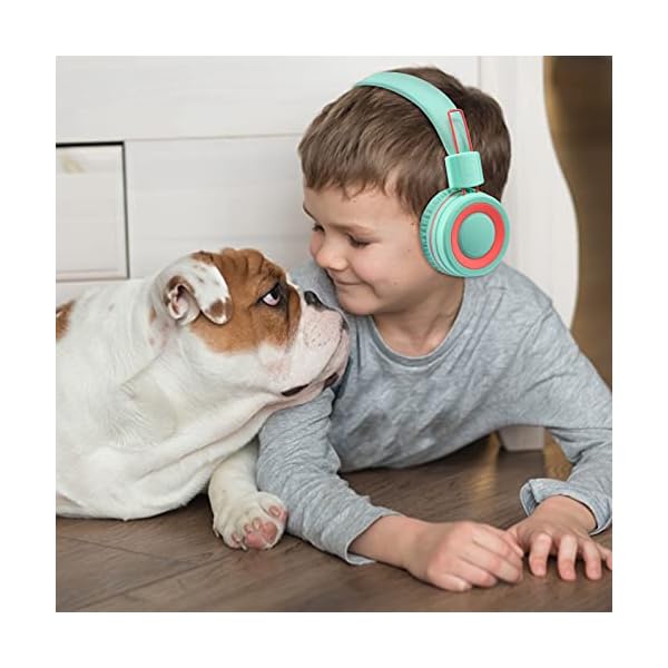 Nilogie A21 Kids Headphones for School/PC/Cellphone/Airplane Travel with 3.5mm Jack Children Boys Girls Foldable Wired On-Ear Headset (Mint Coral)