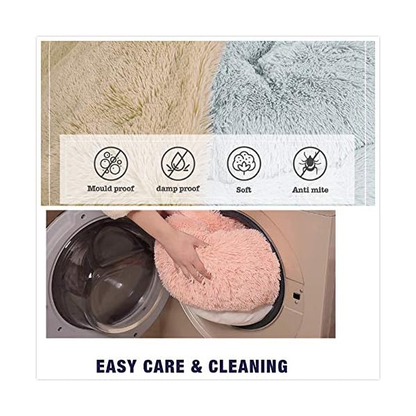 Easy to clean — Lint-free and easy care. The fur mat outside of the pet calming bed cannot be removed, we recommend you to clean it by hand-washing or machine-washable, tumble dry, low heat.