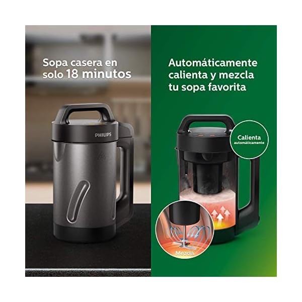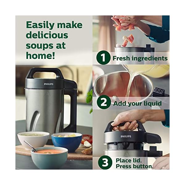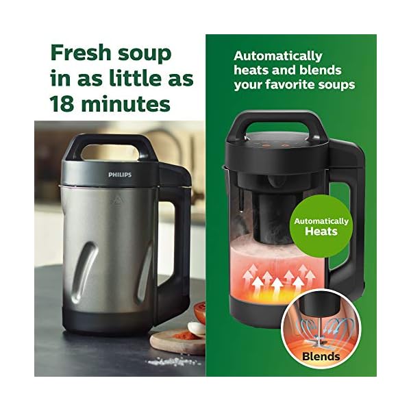 Make fresh Soup when you want. No waiting, no planning, and no additional Appliances necessary. The Philips Soup maker automatically heats and blends your favorite soups – in as little as 18 minutes!