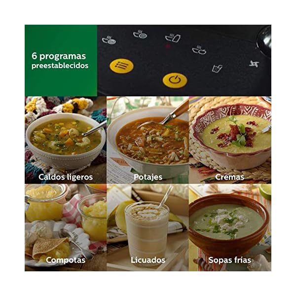More than just Soup. 6 preset programs – pureed Soup, chunky Soup, cold Soup, compote, smoothies, and thanks to optimized heating profile, milk based Soup. Plus, use it as a countertop blender.