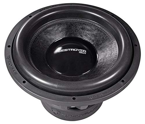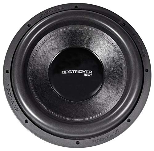 Rockville DESTROYER 15D1 15″ Dual 1-Ohm Car Subwoofer. Peak Power Handling: 8000 Watts. Program Power Handling: 4000 Watts . CEA Rated RMS Power Handling: 2000 Watts . Voice Coils are made in the USA! 3” 4-Layer Black Aluminum Voice Coils Wound with Alumin